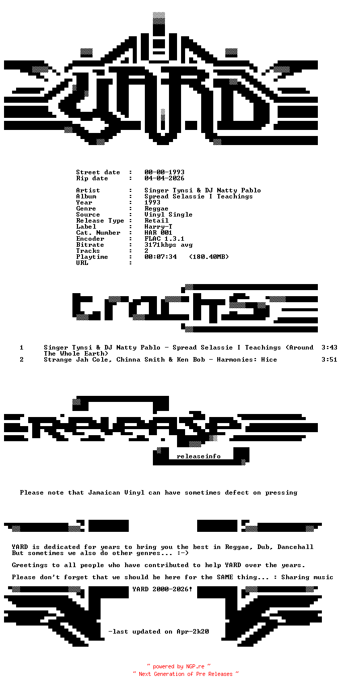 Titel: Singer_Tynsi_and_DJ_Natty_Pablo-Spread_Selassie_I_Teachings-(HAR_001)-VLS-FLAC-1993-YARD