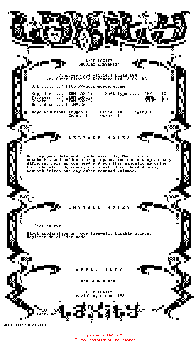 Titel: Syncovery x64 v11 14 3 build 184-LAXiTY
