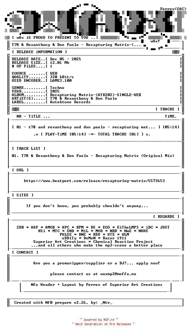 Titel: T78_and_Rexanthony_and_Don_Paolo-Recapturing_Matrix-(ATK202)-SINGLE-WEB