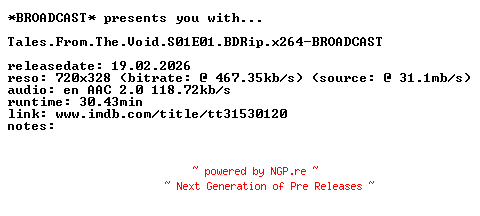 87662044 | TV-BDRIP-X264 | BROADCAST | -//- | 20.02.2026 23:44