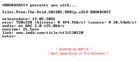 87662054 | TV-BDRIP-X264 | BROADCAST | -//- | 20.02.2026 23:44