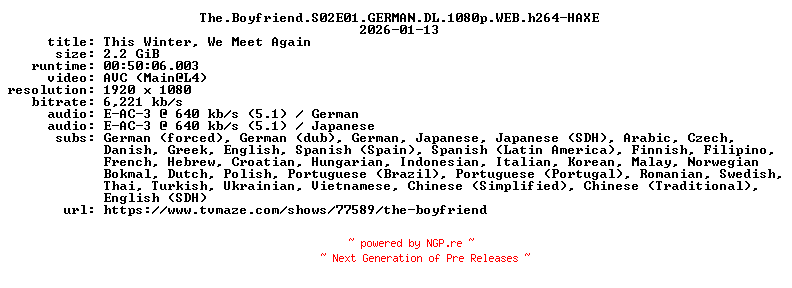 84322765 | TV-HD-X264 | HAXE | Reality-TV/Romance | 13.01.2026 09:00
