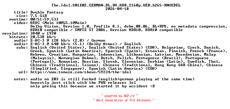 92046496 | TV-HDRIP | KNOEDEL | Drama/Music | 18.04.2026 13:29