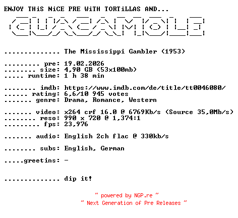 Titel: The Mississippi Gambler 1953 720p BluRay x264-GUACAMOLE