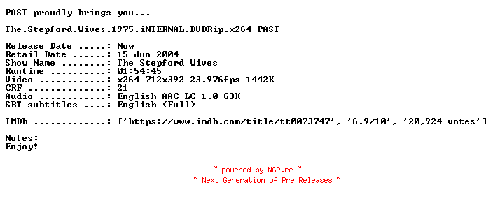 Titel: The Stepford Wives 1975 iNTERNAL DVDRip x264-PAST