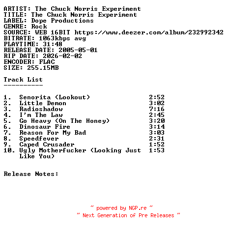 Titel: The_Chuck_Norris_Experiment-The_Chuck_Norris_Experiment-16BIT-WEB-FLAC