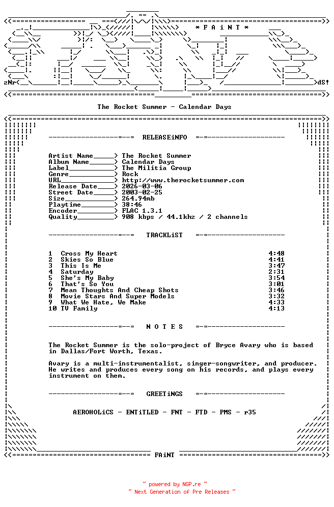 Titel: The_Rocket_Summer-Calendar_Days-CD-FLAC
