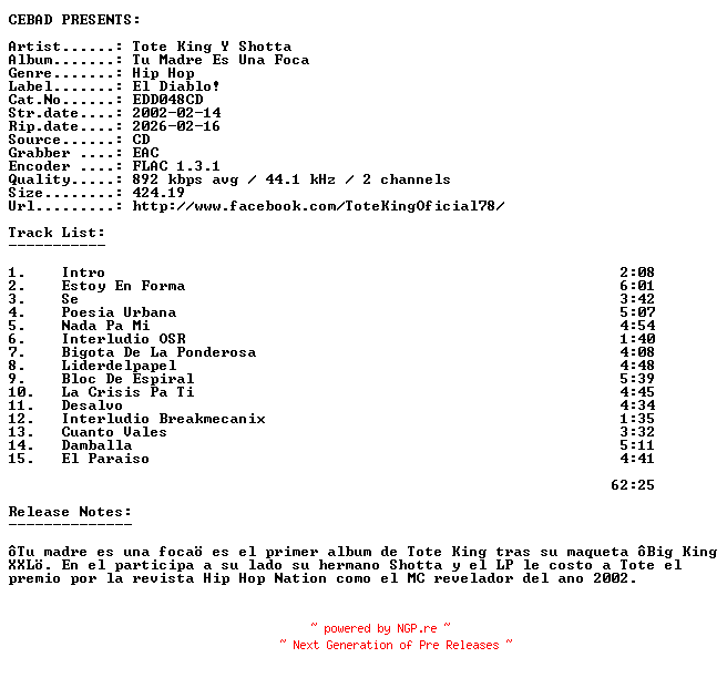 Titel: Tote_King_Y_Shotta-Tu_Madre_Es_Una_Foca-(EDD048CD)-ES-CD-FLAC