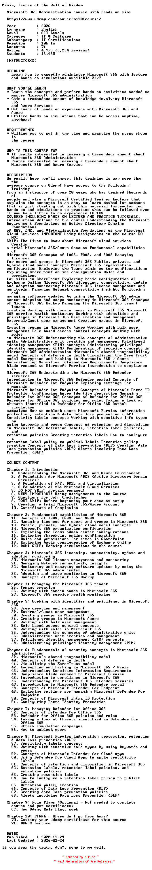 Titel: UDEMY Microsoft 365 Administration course with hands on sims