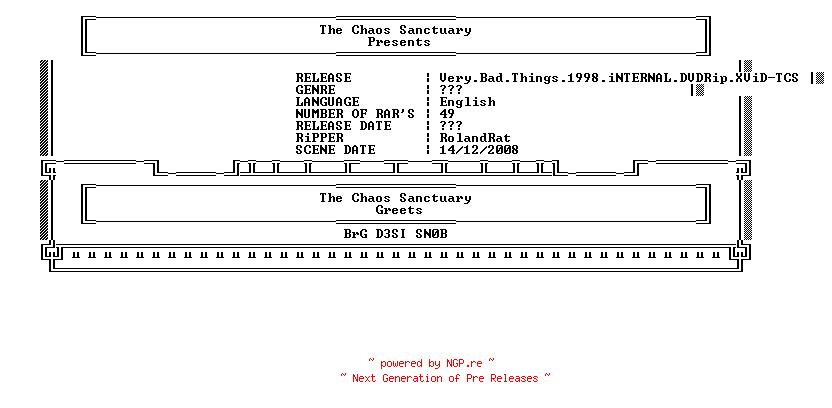 Titel: Very Bad Things 1998 iNTERNAL DVDRip XViD-TCS