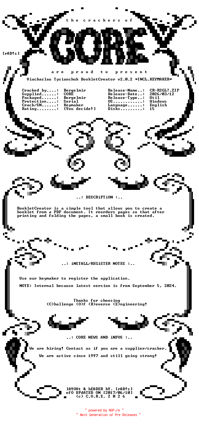 Viachaslau.Tysianchuk.BookletCreator.v2.0.2.Incl.Keymaker.INTERNAL-CORE