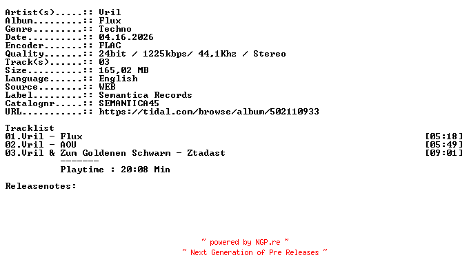 Titel: Vril-Flux-SEMANTICA45-24BIT-WEB-FLAC