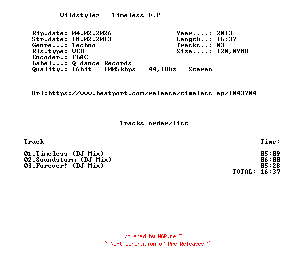 Titel: Wildstylez-Timeless_E P-(Q066D)-16BIT-WEB-FLAC